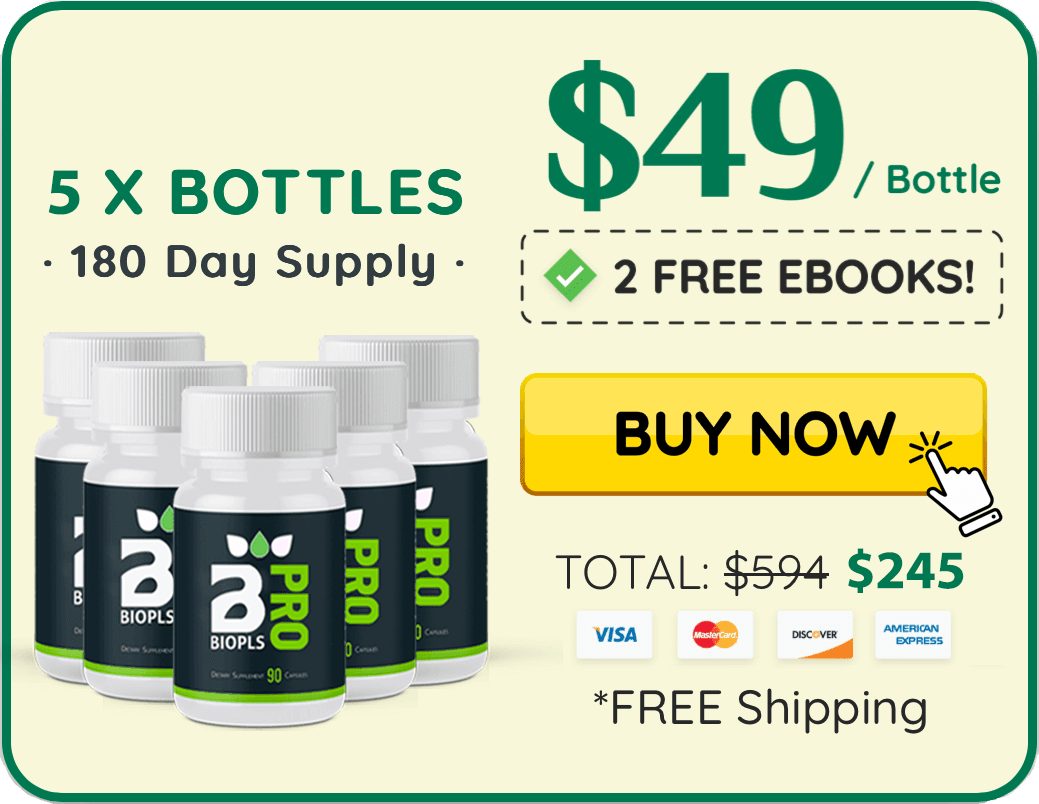 This is the fun part. Click on one of the packages below. Enter your order details on our secure checkout page. After you've finished we'll get your Biopls shipped out to you right away. Order 3 bottles and get the 2 free bonuses instant access, order 5 bottles and get the 2 free bonuses instant access plus free shipping as well.